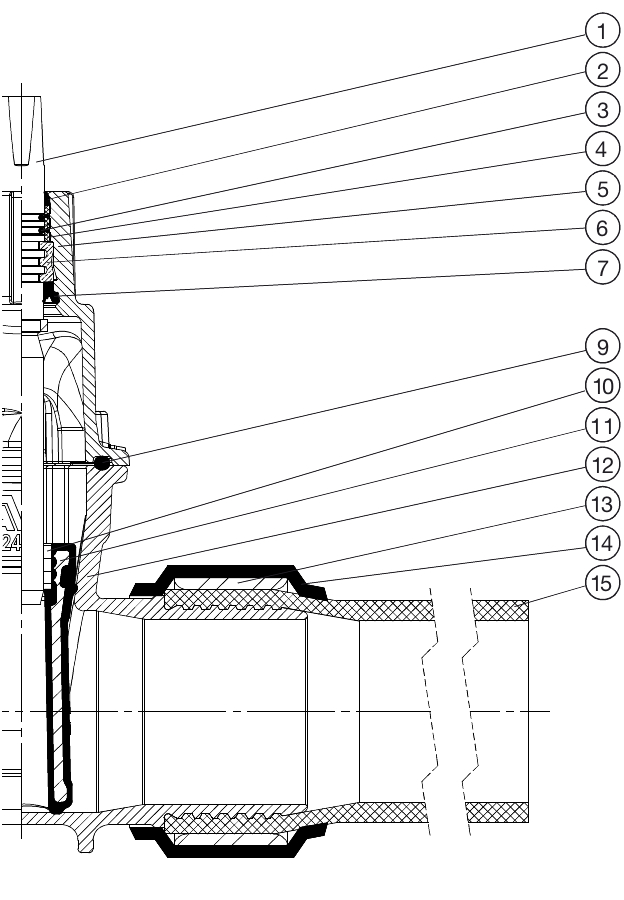 | 11. | Sertar | Fontă ductilă, încapsulată cu EPDM |